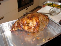 Nach vier Stunden Privatissimum packte ich die Beute ein (wir erinnern uns: Allein!) und schleppte sie nach Hause. Das Roastbeef, das Huhn und die Lammkeule vom Spieß: