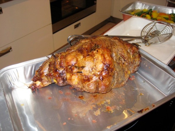 – eine Lammkeule am Spieß (werde ich in Ermangelung eines Spießes zuhause nicht nachmachen müssen)