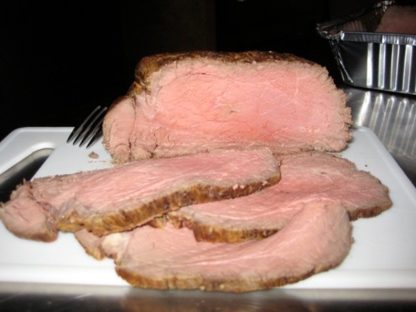 Wo waren wir gerade? Richtig, Roastbeef. Ich wollte Monsieur le chef ja nicht widersprechen, außerdem betrug sich das ganze just in jenen fünf Minuten pro Jahr, in denen ich meine Besserwisserei im Griff habe. Aber Roastbeef konnte sogar ich schon vorher. Es lebe die Niedrigtemperaturmethode. Das ist der einzige Küchenvorgang, der sogar bei mir auf Anhieb klappte und dem ich nicht nur eine Kapelle, sondern einen eigenen Blogeintrag stiften müsste. Deppengesichert durch ein Küchengadget, ohne das ich mittlerweile nicht einmal mehr Wasser koche. Und wie heißt es so schön? Never change a winning Garmethode.