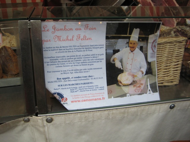 Samstags auf dem Markt käme man auch nie auf den Gedanken, dass Kochen nur Frauensache wäre. Die ausgiebigsten Fachsimpeleien habe ich hier ausschließlich zwischen Männern beobachtet (und damit meine ich ausnahmsweise nicht meinen eigenen). Der Schinkenweltmeister (siehe Bildergalerie) unterhält sich liebend gern mit seinen Kunden über die neuesten Erkenntnisse, wie man das Huhn, das er soeben ausgiebig und liebevoll zurechtgeschnitten und -geflämmt hat, am besten brät.