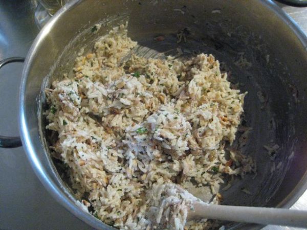 Und das ist die Masse mit Ricotta und Pinienkernen.
