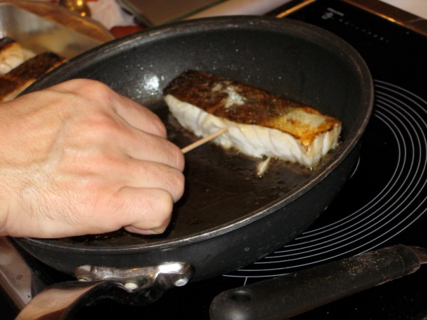 Lachs und Forelle werden bis 50° C Kerntemperatur gegart, Tunfisch maximal bis 45° C. Vor dem Braten wird der Fisch trockengetupft, in den Dämpfer kommt er mit der Haut nach unten.